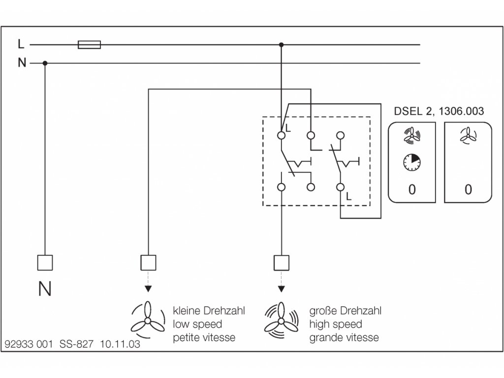 Vypínač a přepínač otáček Helios DSEL 2 se používá ke změně otáček ventilátorů se dvěma úrovněma výkonu (Helios ELS) nebo jako reverzní přepínač k ovládání reverzních ventilátorů (Helio REW, HQW).