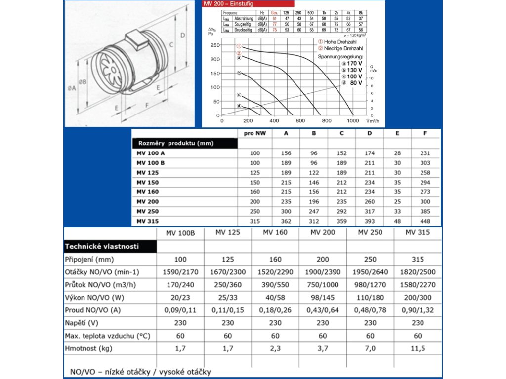 Výkonný axiální ventilátor Helios MultiVent MV 200 s diagonálním oběžným kolem. Speciálně navržený do kruhového potrubí. Vybaven dvourychlostním motorem s plně regulovatelnými otáčkami. Ventilátor je vhodný pro univerzální komerční, průmyslové i domácí využití. Průměr 200 mm. Průtok vzduchu 1000/750 m3/h.