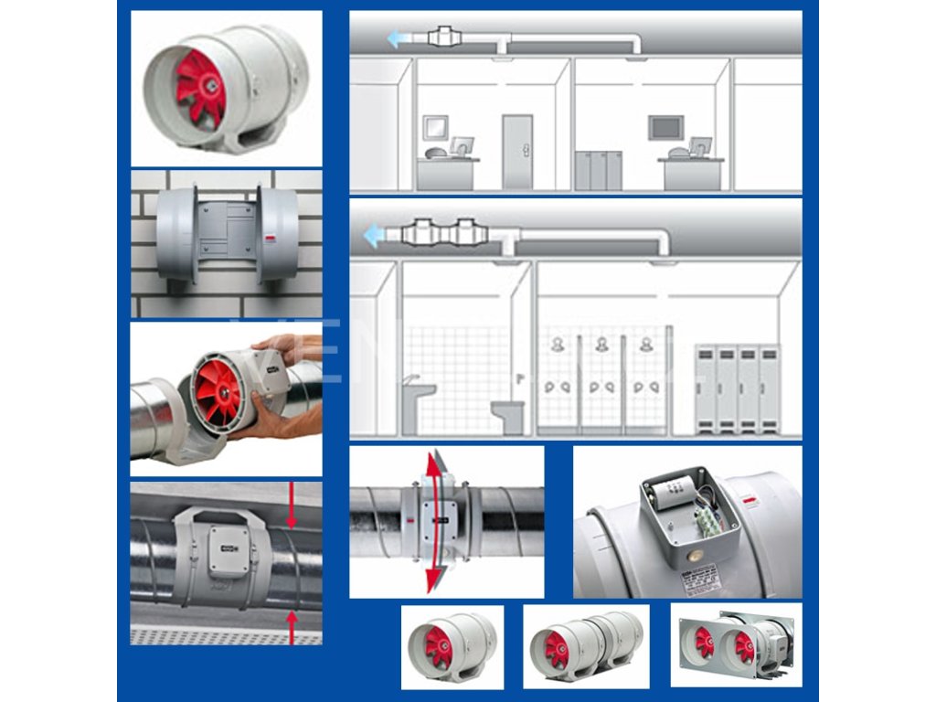 Malý ventilátor do kruhového potrubí vybavený dvourychlostním motorem, který zajišťuje vysoký tlakový výkon a průtok vzduchu 1000/750 m3/h. Otáčky lze dle potřeby regulovat v plném rozsahu. Motor je bezúdržbový, určený pro trvalý provoz. Splňuje krytí IP 44. Díky kvalitním kuličkovým ložiskům a kompaktním rozměrům lze instalovat v libovolné poloze. Ideální pro široké komerční, průmyslové i domáci využití.