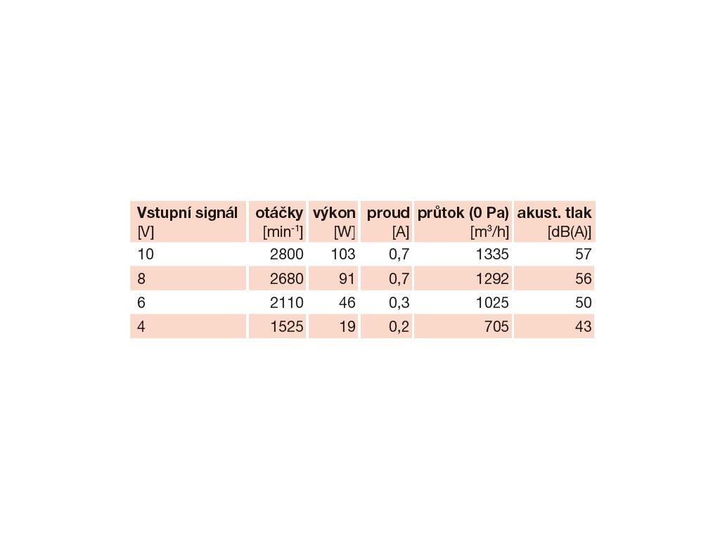 Hluk emitovaný ventilátorem je uveden v tabulkách, měření je prováděno ve vzdálenosti rovné trojnásobku průměru oběžného kola (minimálně však 1,5 m) na straně sání.