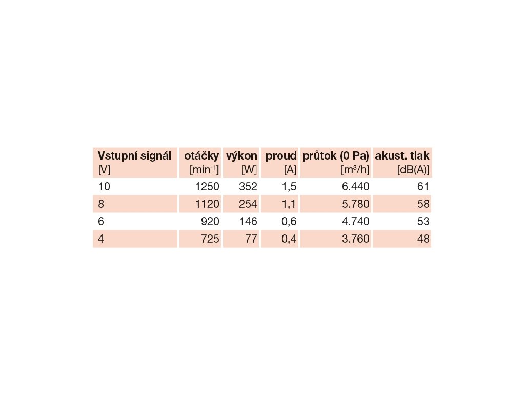 Hluk emitovaný ventilátorem je uveden v tabulkách, měření je prováděno ve vzdálenosti rovné trojnásobku průměru oběžného kola (minimálně však 1,5 m) na straně sání.