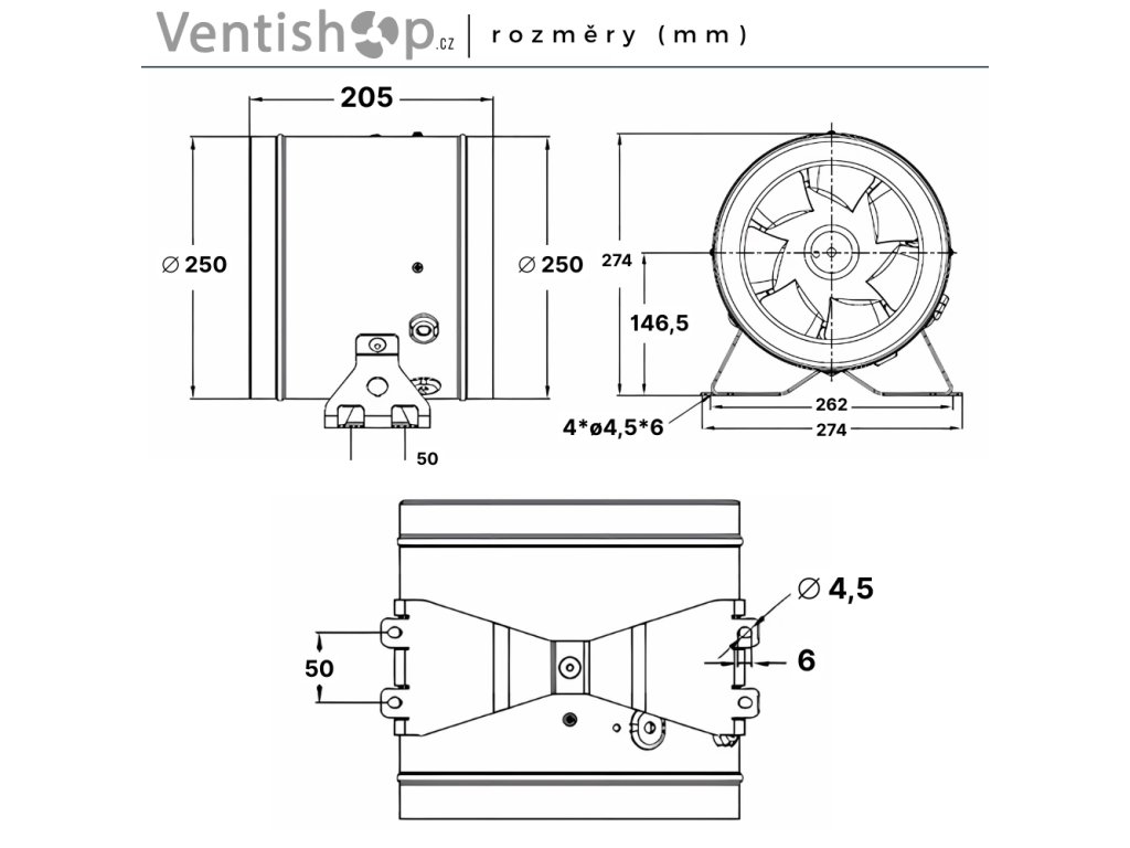 Ventilátor do potrubí - ⌀ 250 mm (průměr), axiální konstrukce, úsporný EC motor, příkon 180 W, průtok 1764 m3/h, krytí IP 44, tepelná ochrana (+ auto reset), napětí 230 V, materiál ocel. plech, regulovatelné (plynule 0-10 V signálem), hlučnost 58,6 dB, ochrana proti přehřátí, max. teplota 60 °C, proud 1,6 A, umístění (do - bytů / obchodů / koupelen / kanceláří / toalet / kuchyní / komerčních prostor), rozměry 274 × 274 mm (Š×V), hmotnost 4,5 kg
