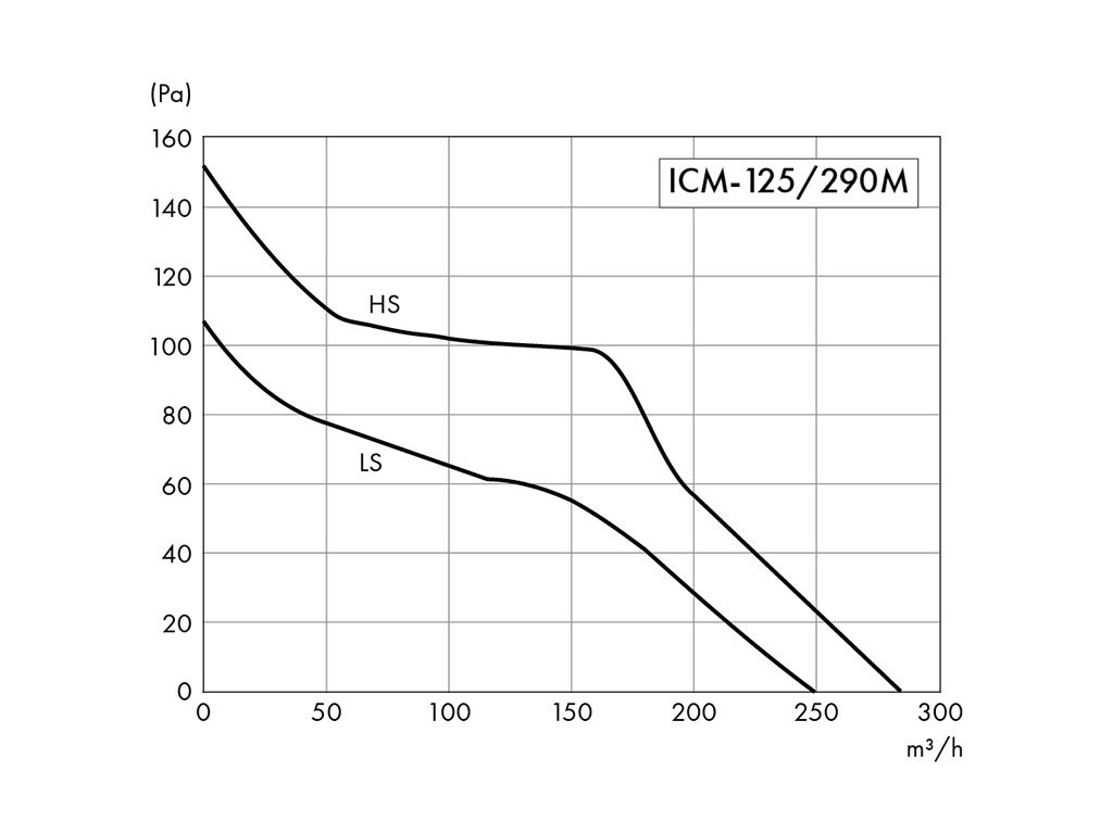 Ventilátor do potrubí - ⌀ 125 mm (průměr), diagonální konstrukce, kuličková ložiska, max. průtok 248/284 m3/h, příkon 28/33 W, krytí IP 44, AC motor, 2 rychlostní, plastová konstrukce, hlučnost 26/31 dB/A, ochrana proti přehřátí, max. teplota 60 °C, proud 0,13/0,14 A, umístění (do - koupelen / toalet / kuchyní), rozměry 258 × 188 mm (Š×V), hmotnost 1,8 kg