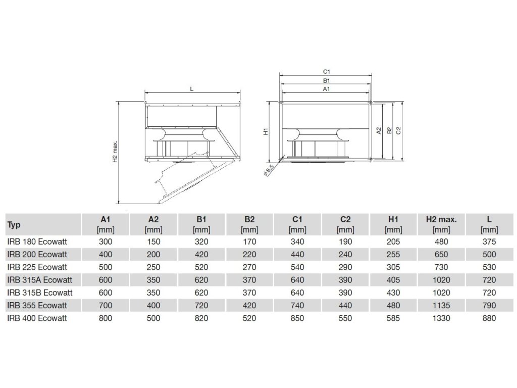 Ventilátor IRB Ecowatt je efektivní řešení pro náročné požadavky na odvětrávání skrze čtyřhranné potrubí. Má odolnou ocelovou skříň s revizním víkem pro snadný přístup.