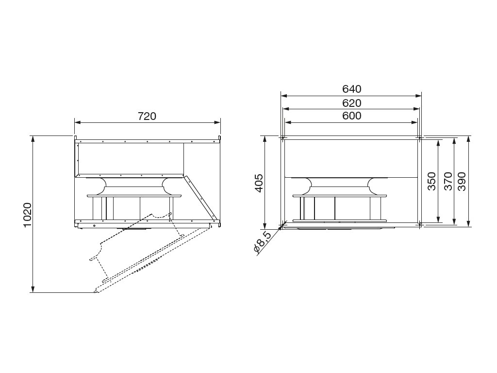 Skříň je z ocelového, galvanicky pozinkovaného plechu, skříň je opatřena přírubami pro upevnění do čtyřhranného potrubí. Na skříni je revizní víko, po jehož demontáži je přístupný motor a oběžné kolo.