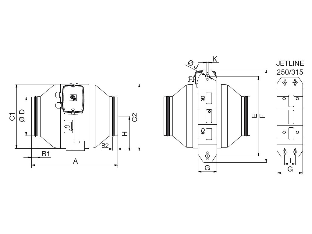 Skříň je vylisována z ocelového pozinkového plechu. Kompaktní nízkoprofilový design. Na hrdlech pro připojení potrubí je gumové těsnění, na výtlaku je integrovaný difuzor zlepšující účinnost a snižující hluk.