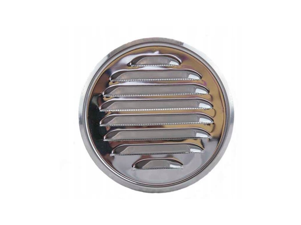 Lesklá nerezová větrací mřížka s přírubou do kruhového potrubí s průměrem 100 mm je vhodná pro větrání a ventilaci či jako zakončení průduchu. Mřížka má pevné horizontální lamely proti dešti s pevným sklonem. Kromě žaluzií je mřížka vybavena síťkou proti hmyzu.