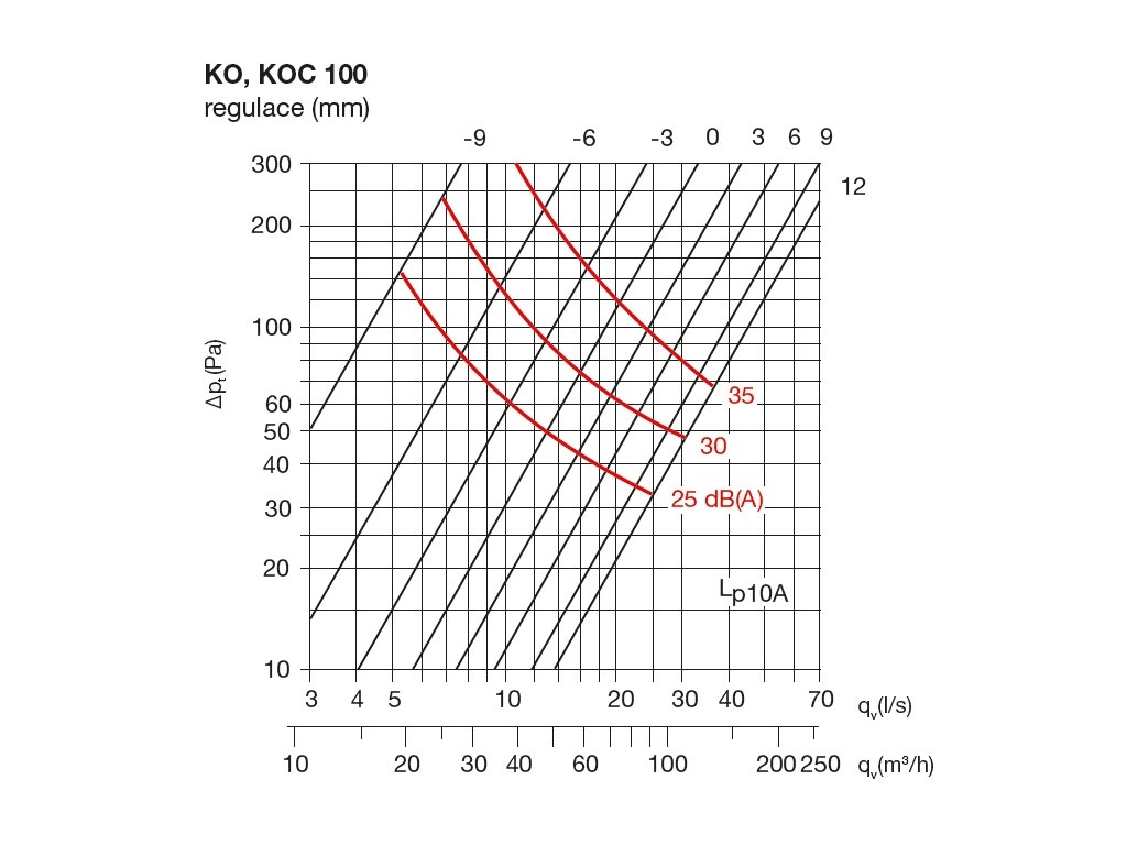 Regulace průtoku vzduchu se provádí otáčením středového disku, kterým se změní nastavovací rozměr s (mm). Měření průtoku vzduchu se provádí jako měření diference tlaku za použití měřící trubice. Bližší informace viz diagramy průtoku.