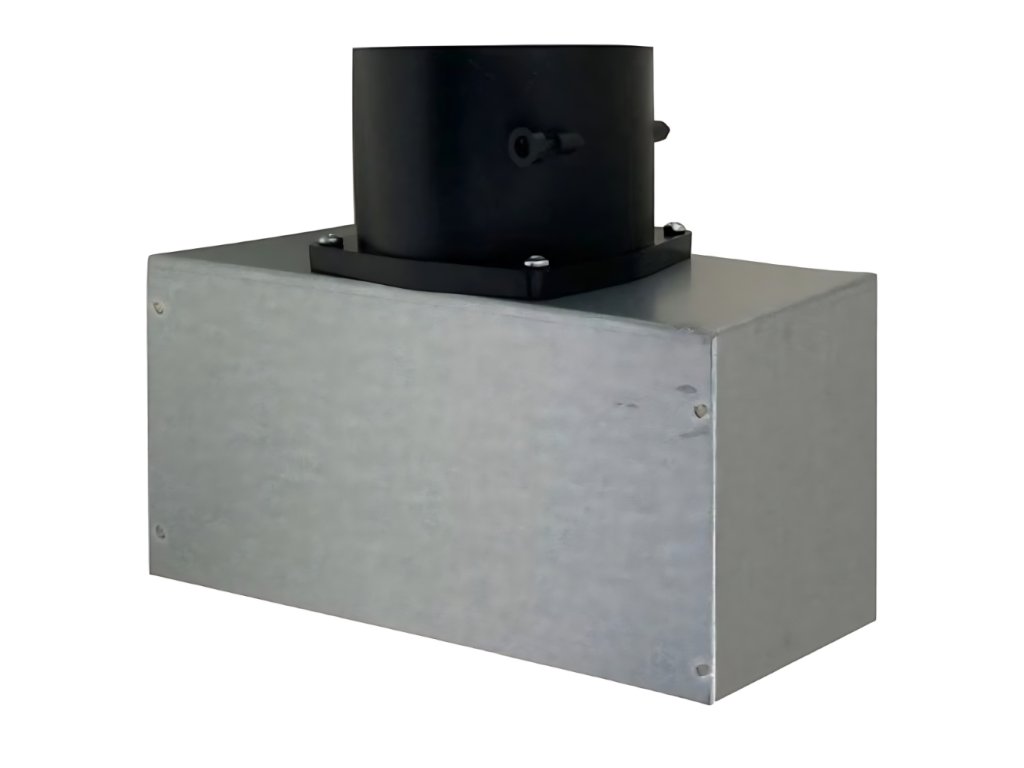 Plenum box / výustka pro větrací mřížku - ⌀ 90 mm / 205 x 85 mm, konstrukce pozinkovaný plech, barva stříbrná / černá, materiál hrdla plast, prostorově nenáročné, patentově chráněná technologie, součástí balení (1x BOX, 1x těsnění, 1x trn), rozměry 212 × 100 mm (Š×V), hmotnost 0,46 kg