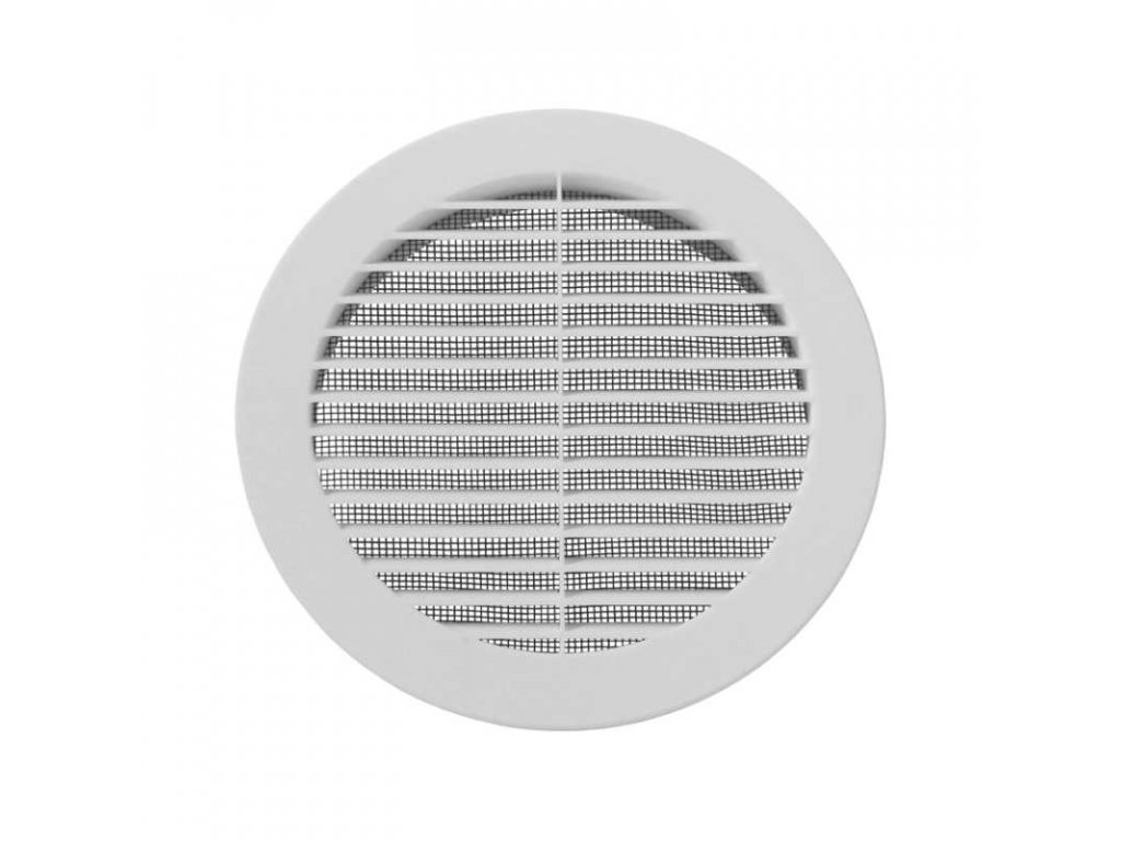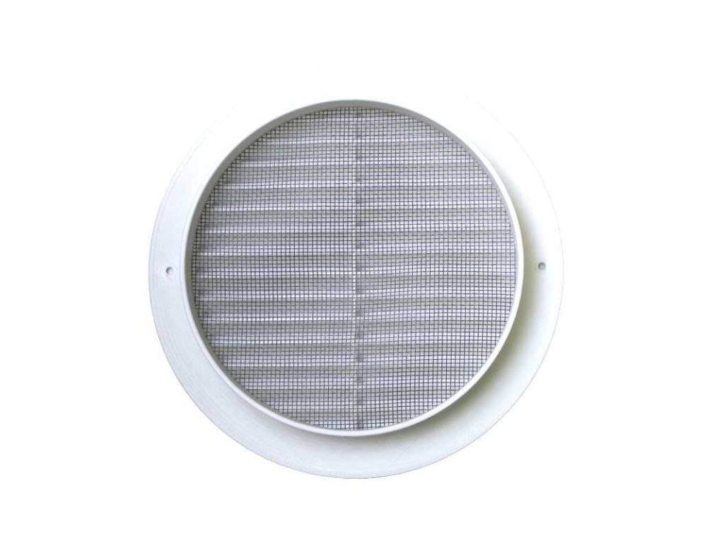 Kulatá plastová mřížka se síťkou KPMb 150 pro zasunutí do kulatého potrubí o průměru 150 mm.