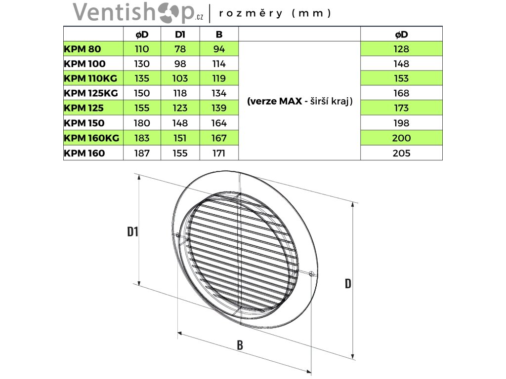 KPMc 125 MAX kulatá plastová mřížka, černá