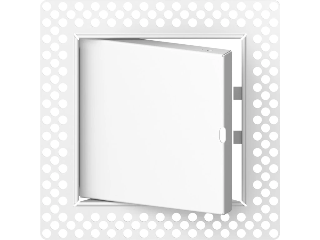 Kovová revizní dvířka - 150 × 150 mm (Š × V) (bez rámu), i pro skrytou instalaci, odolné proti vlhkosti, perforovaný kovový rám, zvýšený okrajový profil (pro perfektní nanášení omítky / spárovacích hmot), barva bílá, polymerový nátěr, materiál - pozink. ocel, čtvercový tvar, odnímatelná dvířka, předpokládané umístění (zdivo, fasáda, stěna, strop, pod obklad, pod vanu, na WC, stoupačky), upevnění lepidlem či šrouby, instalační otvory, rozměry (+ rám) 185 × 185 mm (Š × V), hmotnost 0,25 kg