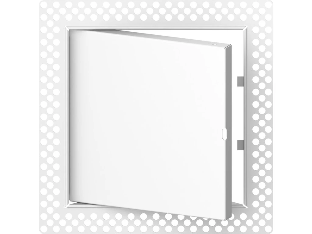 Kovová revizní dvířka - 200 × 200 mm (Š × V) (bez rámu), i pro skrytou instalaci, odolné proti vlhkosti, perforovaný kovový rám, zvýšený okrajový profil (pro perfektní nanášení omítky / spárovacích hmot), barva bílá, polymerový nátěr, materiál - pozink. ocel, čtvercový tvar, odnímatelná dvířka, předpokládané umístění (zdivo, fasáda, stěna, strop, pod obklad, pod vanu, na WC, stoupačky), upevnění lepidlem či šrouby, instalační otvory, rozměry (+ rám) 235 × 235 mm (Š × V), hmotnost 0,4 kg