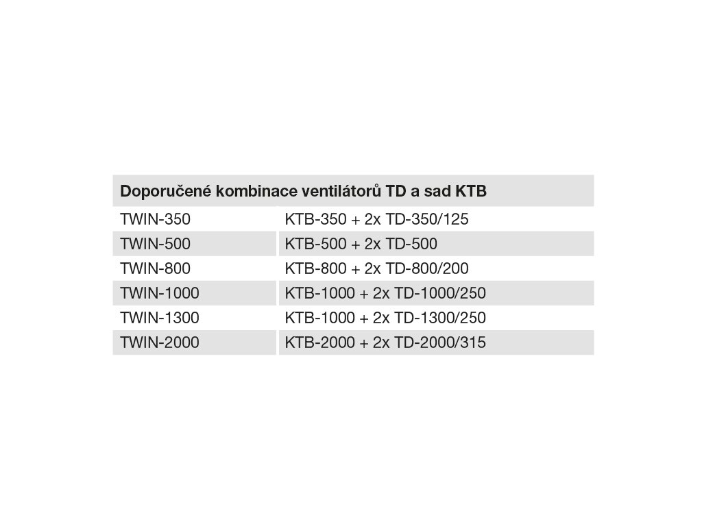 Je nutno objednat sadu KTB a příslušné ventilátory samostatně, Cena zde uvedena je pouze cena za sadu KTB. Ventilátory TD MIXVENT viz zde.