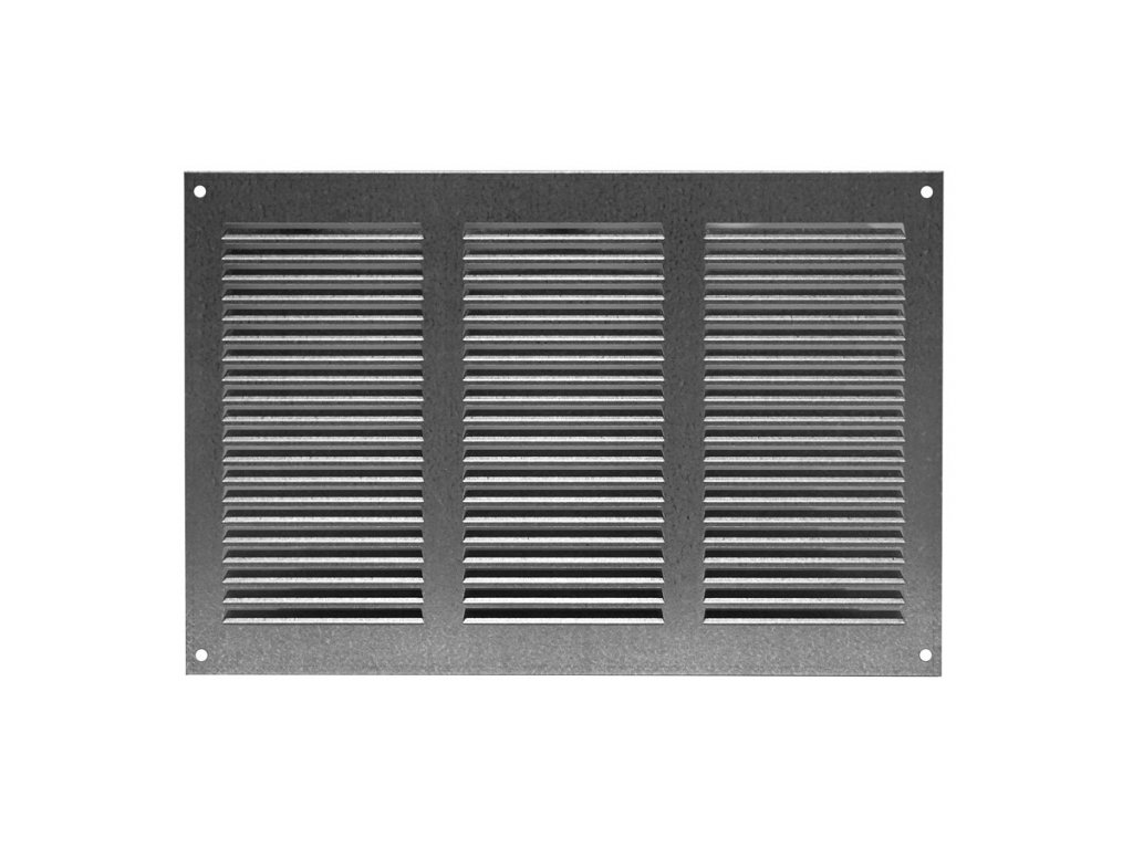 Ventilační mřížka - bez příruby, barva šedá / stříbrná (bez nátěru), materiál pozink. ocel, obdélníkový tvar, předpokládané umístění (fasáda, zdivo), elegantní design, síť proti hmyzu, ptactvu, hlodavcům, jednoduchá instalace, montážní otvory, rozměry 300 × 200 mm (Š×V), hmotnost 0,2 kg