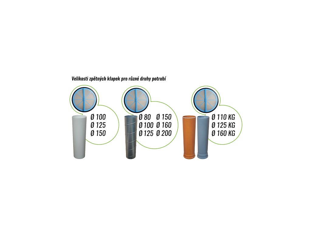 Montáž do potrubí je rychlá a jednoduchá - pouhým zasunutímDíky silikonové membráně nedochází ke klepání uvnitř potrubíKlapka je těsnáNení třeba hluboká zástavbaKlapka je určena pro instalaci do HT (šedé) či KG (oranžové) potrubíKlapka KZK 110 KG není vhodná pro instalaci do vzduchotechnického potrubí:Pro tyto vyjmenované druhy potrubí vyberte jiný rozměr. Ke správnému výběru je nutné znát vnitřní průměr potrubí. Klapky KZK se vyrábí ve všech standardních rozměrech pro potrubí průměru 80 mm až 200 mm. Zároveň existují ve verzích s dodatečnou síťkou proti hmyzu (KZK-S) nebo s usměrňovačem průtoku vzduchu (KZK-U).