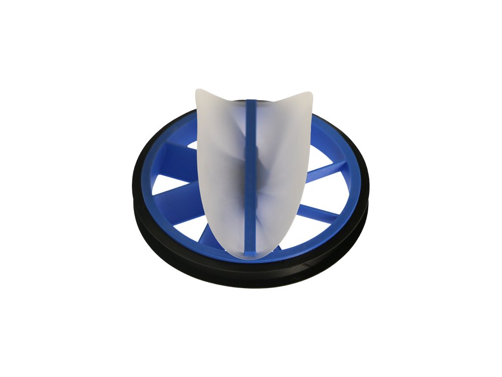 Zpětná klapka s silikonovou membránou a usměrňovačem pro kruhové potrubí.