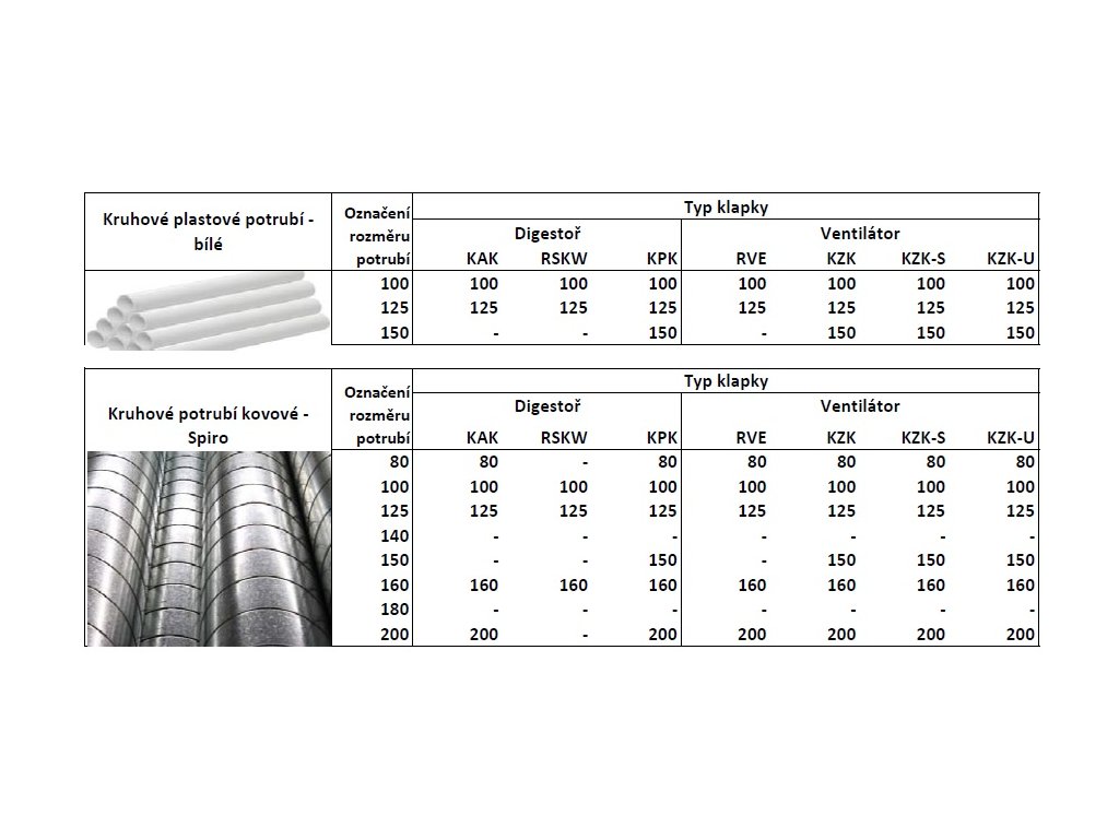 | Napojitelné potrubí: | ⚪ Kruhové potrubí, 🟠 KG potrubí |