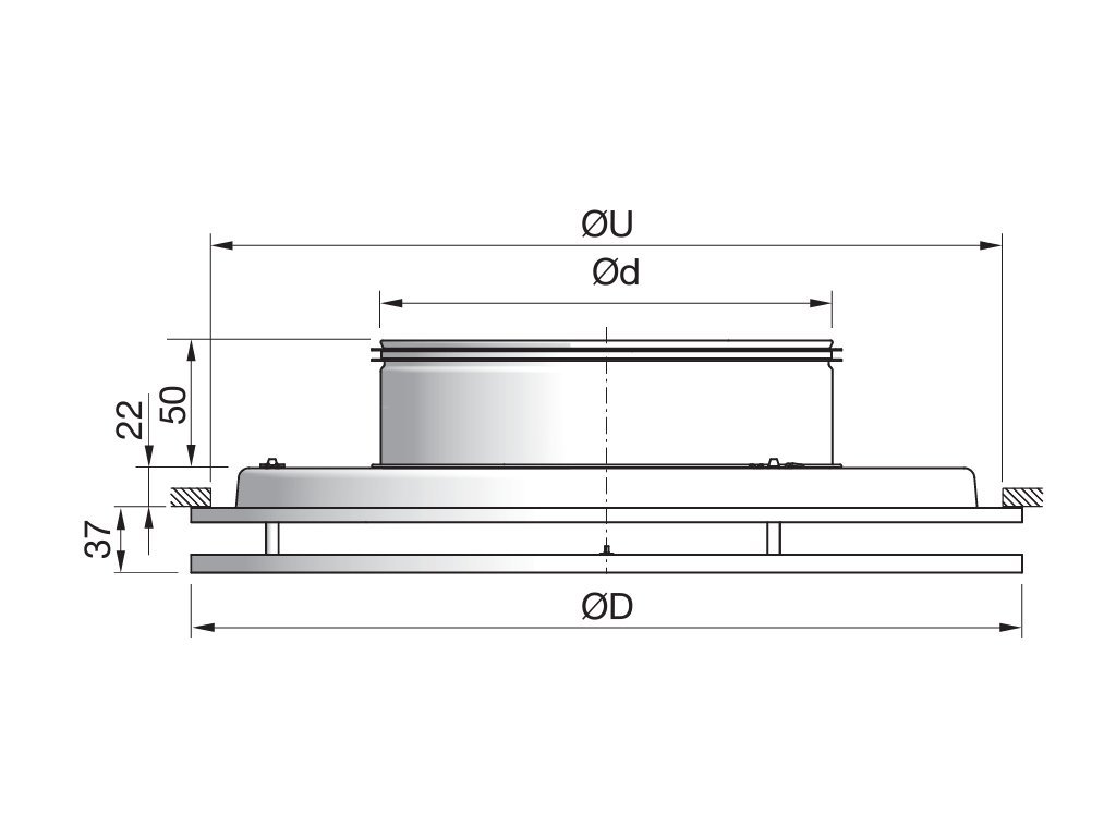 Kovový talířový ventil (difuzor) LCA s průměrem připojení 100 mm. S neperforovaným čelním panelem je určen pro přívod a odvod vzduchu. Kruhový difuzor LCA je vhodný pro horizontální přívod chladícího vzduchu.