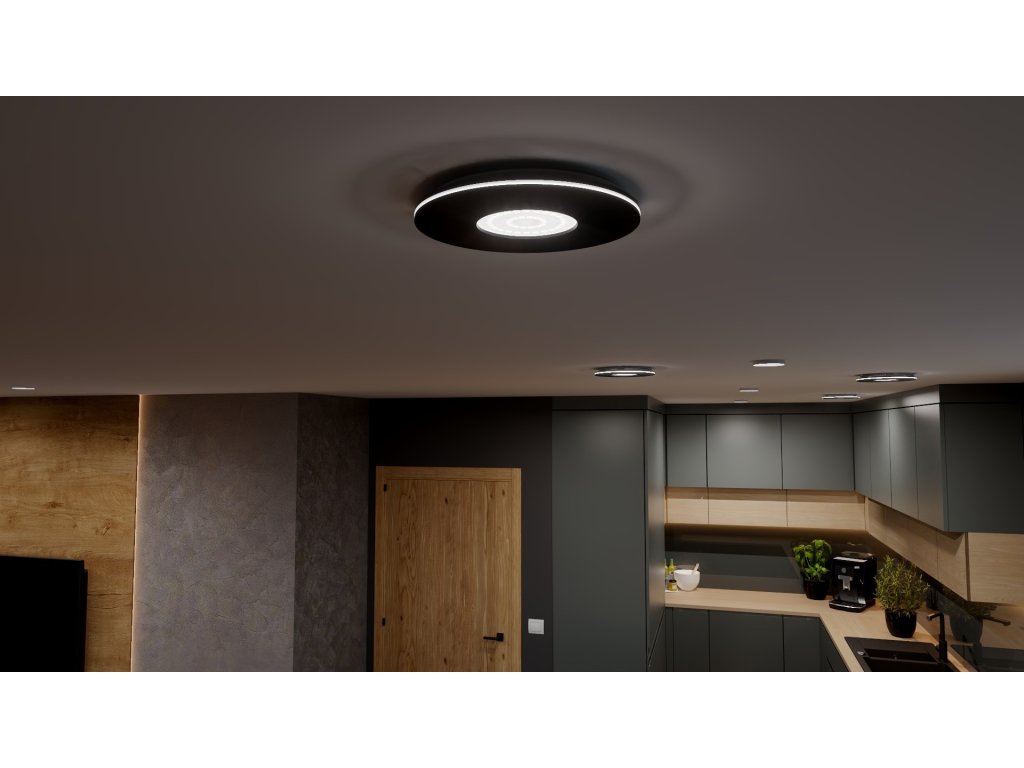 LUFTOMET Lumen 125 talířový ventil, plast kruh černý lesk, zděř černá, teplá 3000 K