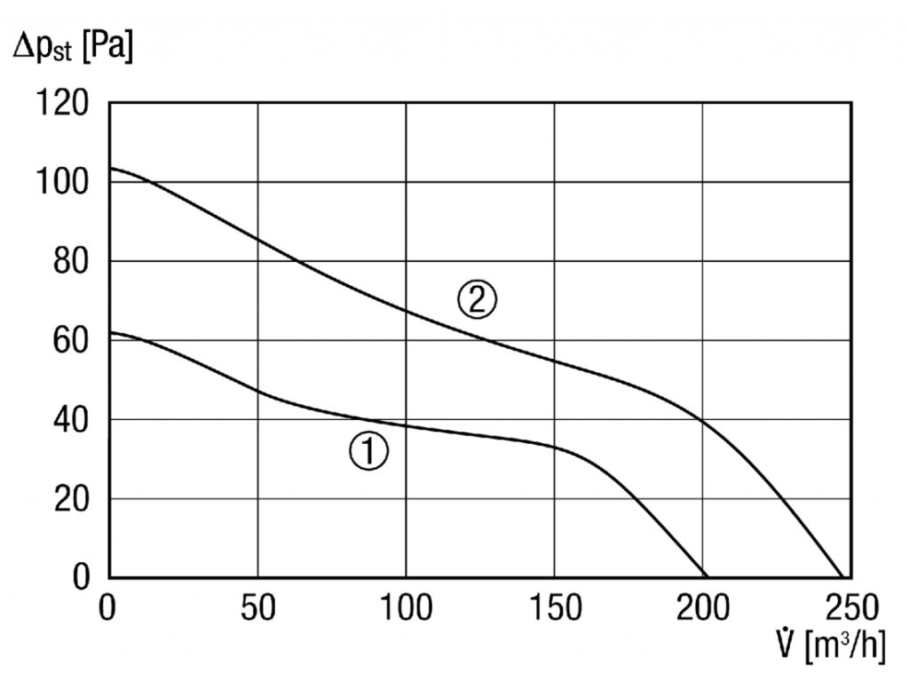 | Průtok (0 Pa) (m3/h): | 200/250 |