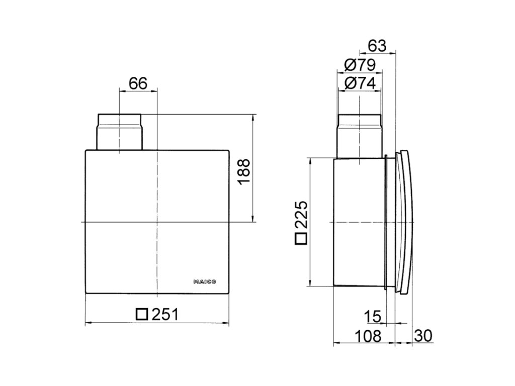 Kvalitní ventilátory německé výroby Maico s dvěma rychlostmi a nastavitelným časovým náběhem a doběhem, vhodný pro umístění do boxu a následné připojení do potrubí o průměru 80 mm. S průtokem vzduchu až 62 m3/h. Odolnost proti vodě o stupni krytí IP X5 zajistí spolehlivost i při nechtěném kontaktu s vodou. Filtrace G2 prodlužuje životnost ventilátoru a stará se o čistotu prouděného vzduchu. Zapuštěná konstrukce nezabírá prostor v místnosti a přidává na estetické hodnotě ventilátoru. Energeticky úsporný motor německé kvality. Barva - bílá (podobná RAL 9016).