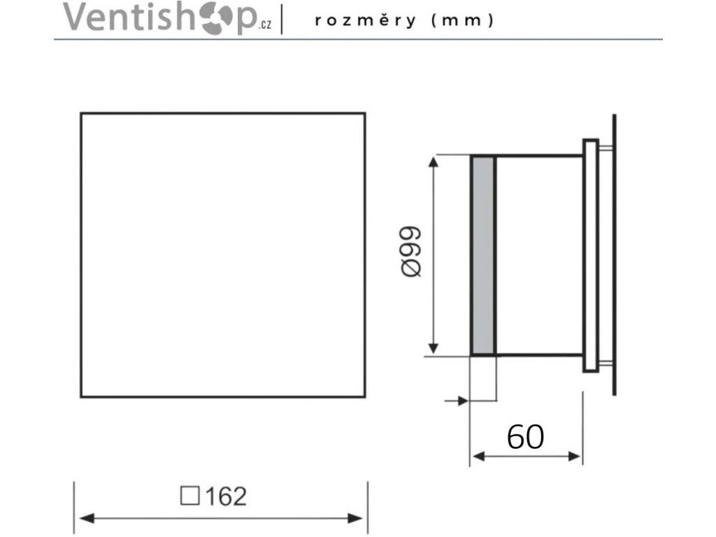 Tichý ventilátor do koupelny - ⌀ 100 mm (průměr), axiální konstrukce, kuličková ložiska, max. průtok 169 m3/h, barva černá, příkon 18 W, s časovým doběhem, krytí IP X4, hlučnost 32 dB/A, umístění (do - koupelen / toalet / kuchyní), otáčky 2750/min, elegantní minimalistické tělo, napětí 230 V / 50 Hz, nadstandardní záruka 5 let, rozměry 183 × 183 mm (Š×V), hmotnost ~ 2 kg