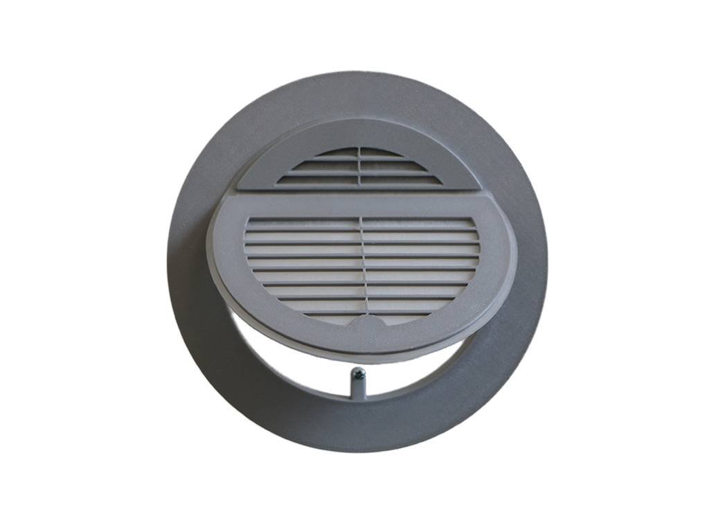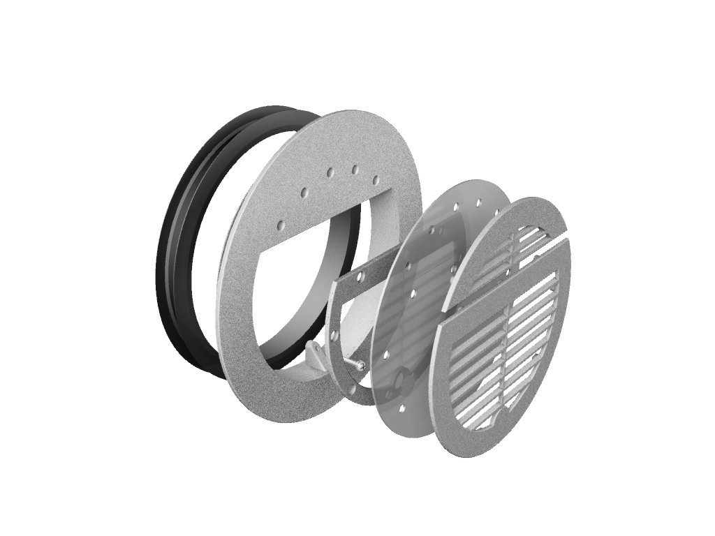 Mřížkoklapka v sobě kombinuje dva produkty - kulatou mřížku a zpětnou klapku. Zamezuje vniknutí nežádoucích předmětů do potrubí a brání zpětnému proudění vzduchu. Tato mřížkoklapka je určena pro připojení na kruhové vzduchotechnické potrubí o průměru 110 mm. Zasouvá se do konce potrubí na fasádě. Díky gumovému těsnění je montáž snadná a rychlá.