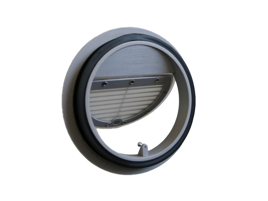 Mřížkoklapka v sobě kombinuje dva produkty - kulatou mřížku a zpětnou klapku. Zamezuje vniknutí nežádoucích předmětů do potrubí a brání zpětnému proudění vzduchu. Tato mřížkoklapka je určena pro připojení na kruhové vzduchotechnické potrubí o průměru 125 mm. Zasouvá se do konce potrubí na fasádě. Díky gumovému těsnění je montáž snadná a rychlá.