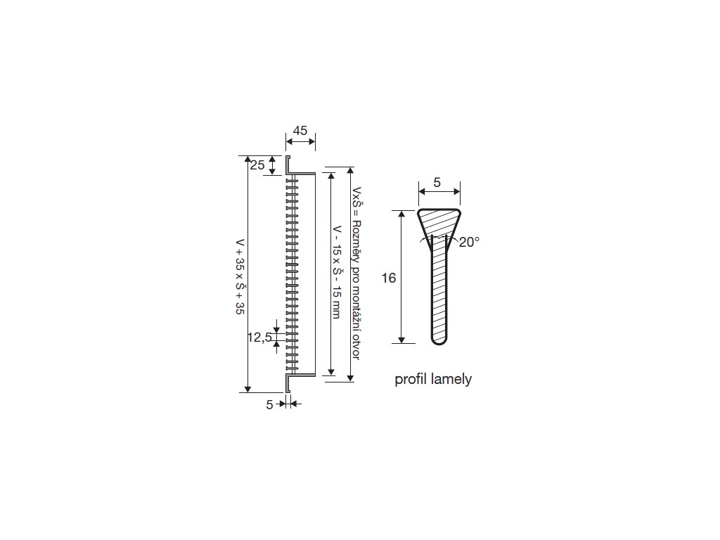 | Kategorie: | MSU 25 1.0 - uzavřené, jednořadé, úhel natočení lamel 0° |