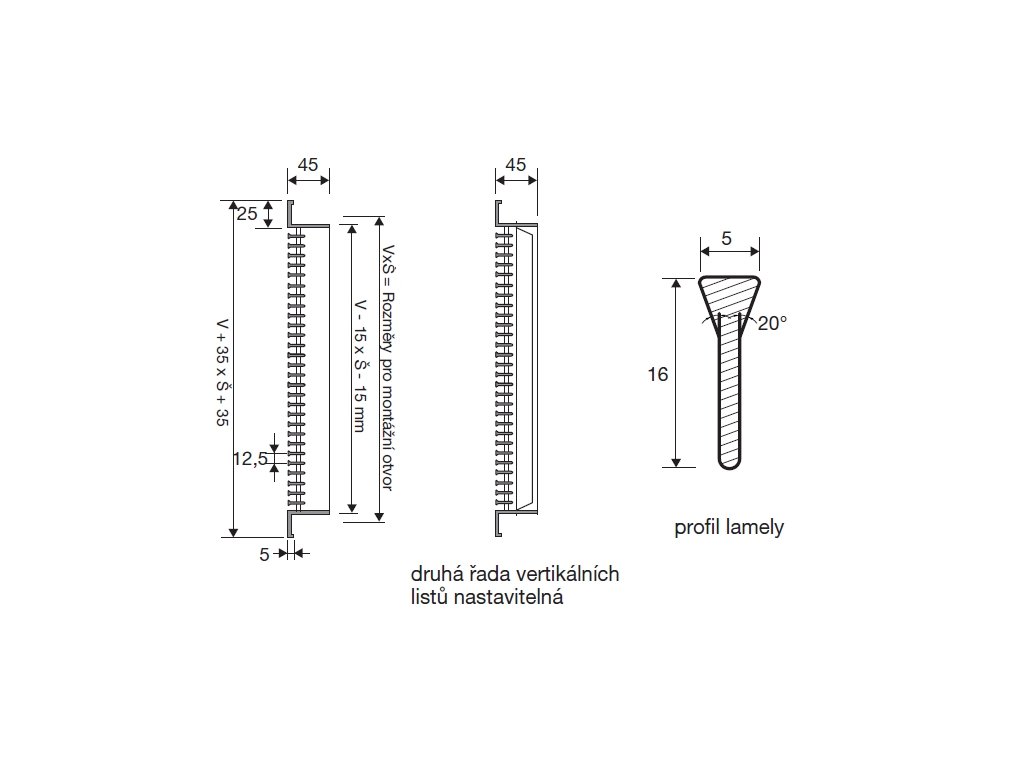 | Kategorie: | MSU 25 2.0 - uzavřené, dvouřadé, úhel natočení lamel 0° |