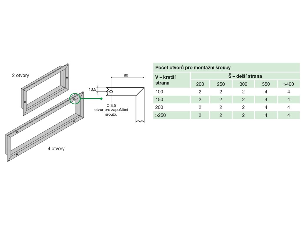 mřížek řady MSU se provádí pomocí upevňovacích rámečků na potrubí nebo na stěnu. Otvor pro mřížku je u základní rozměrové řady (Š) x (V).