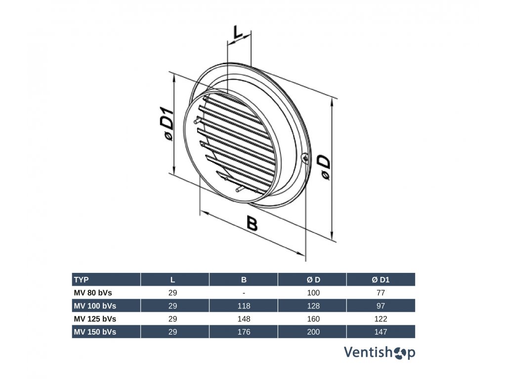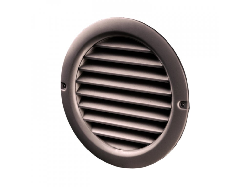 Hnědá plastová kruhová odvětrávací mřížka MV 100 bVs se síťkou proti hmyzu. Mřížku je možné vsunout do potrubí a za pomoci lepidla připevnit, nebo přišroubovat ke stěně vruty. Od rozměru 100 má mřížka přípravu (perforaci) pro uchycení vruty.