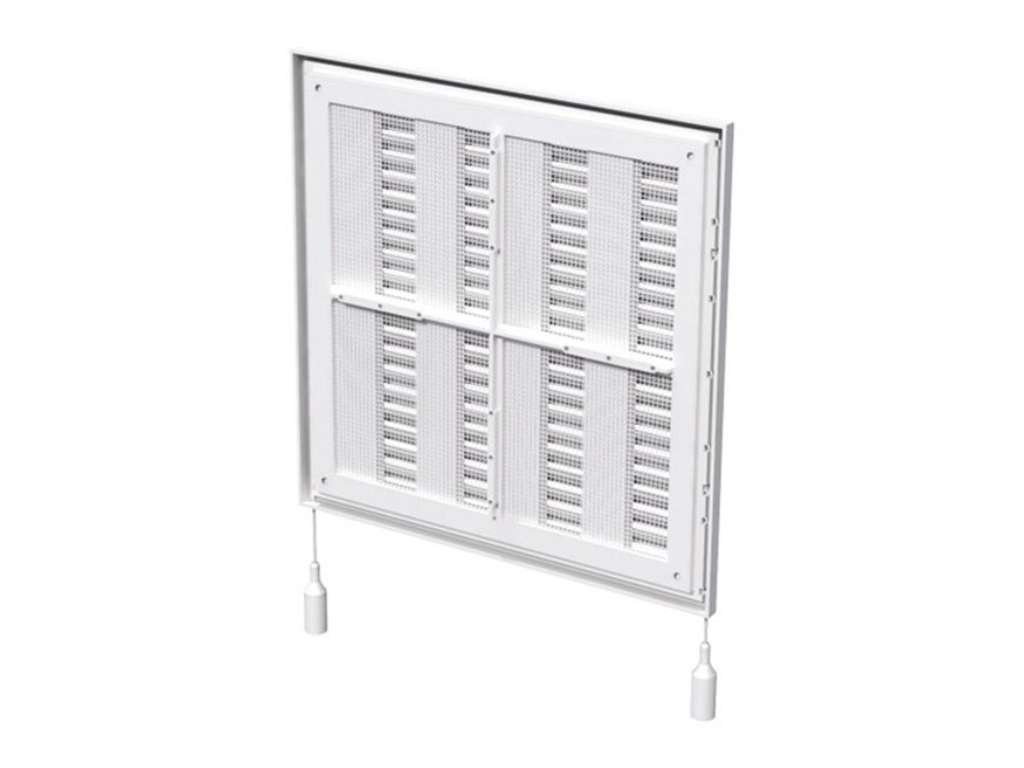 Plastová větrací mřížka MV 100 Rs s regulací a síťkou proti hmyzu. Ventilační mřížka s pevnými skloněnými horizontálními žaluziemi určena pro vnitřní a vnější montáž. Účinné manuální ovládání mřížky pomocí páčky nebo provázku.