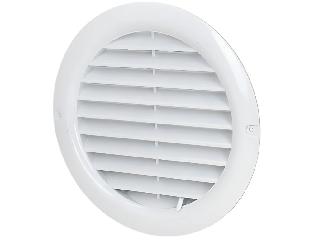 Plastová ventilační mřížka - ⌀ 100-125 mm (průměr potrubí), materiál ABS plast, barva bílá, plně regulovatelný průtok, nastavitelný průměr na míru, pro nástěnnou i stropní montáž, kruhová příruba, rozměry 125 × 125 mm (Š×V), hmotnost 0,3 kg