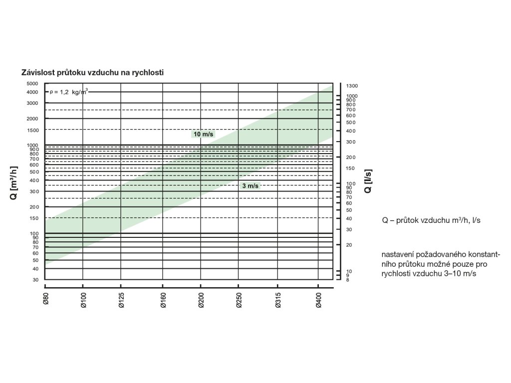 Regulátor průtoku je vyroben z ocelového galvanicky pozinkovaného plechu. Pracovní teplota -20° až +70 °C. Regulační ústrojí je pevně nastaveno na požadovaný průtok. Při zvětšení průtoku vzduchu vzroste rozdíl tlaků v regulátoru a dojde k přivření klapky a tím ke zmenšení průtočného průřezu ventilu. Tím opět poklesne průtok na původní hodnotu.