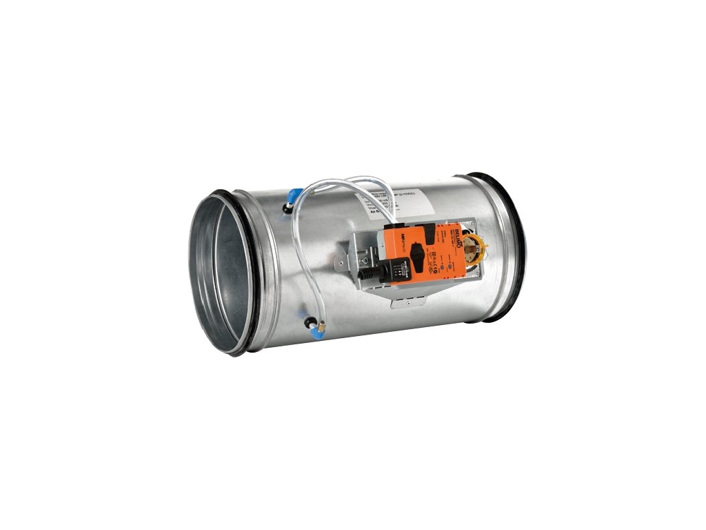 Regulační klapka pro kruhové potrubí s vestavěnou regulací MVF-S se skládá z těsné klapky, servopohonu a měřícího zařízení. Vstupní data jsou porovnána s referenčním signálem a následně je servopohonem upraveno nastavení klapky.