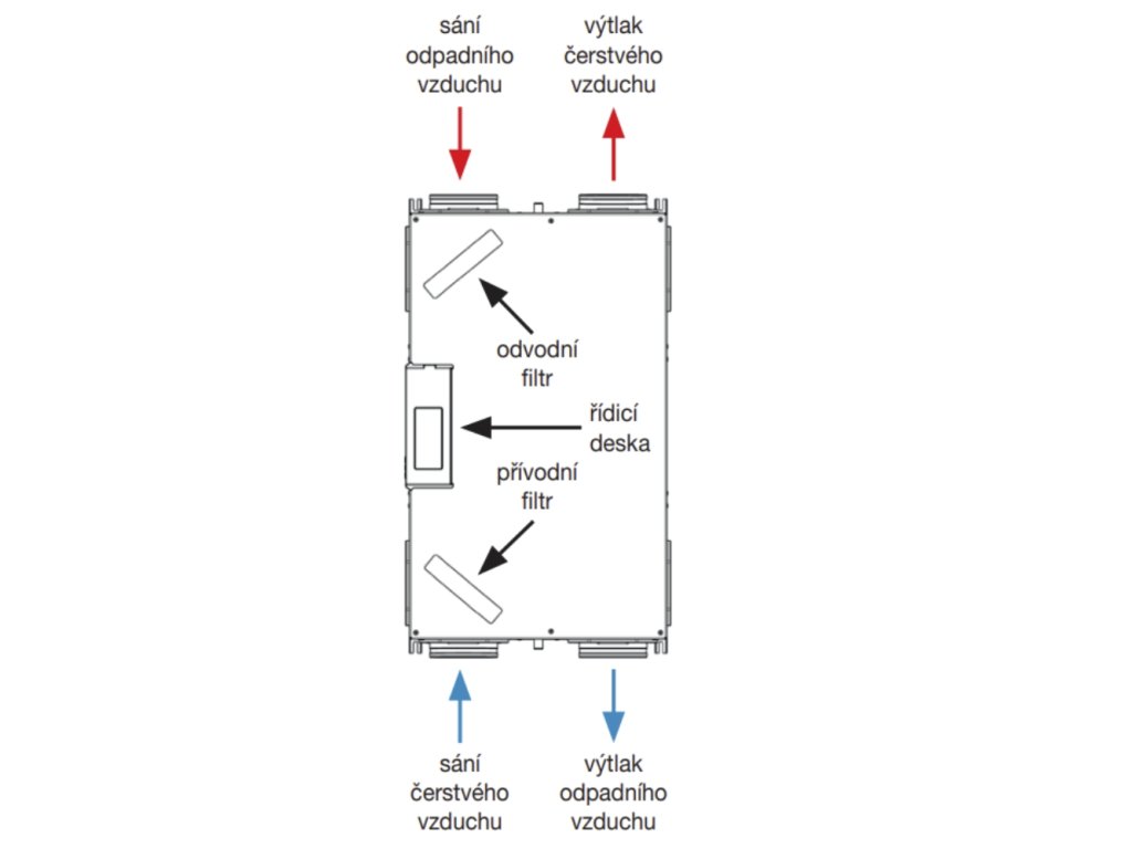 Díky výkonnému výměníku s vysokou účinností přenosu tepla jednotka uchová velké množství tepla, které by při obvyklém způsobu větrání v zimních měsících odcházelo ven.