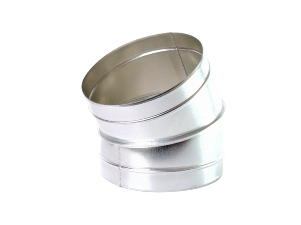 Koleno se ke spiro potrubí připojuje jednoduchým vsunutím. Pevného spojení s potrubím docílíme samořeznými šrouby nebo nýty a případně zaizolujeme hliníkovou lepící páskou.