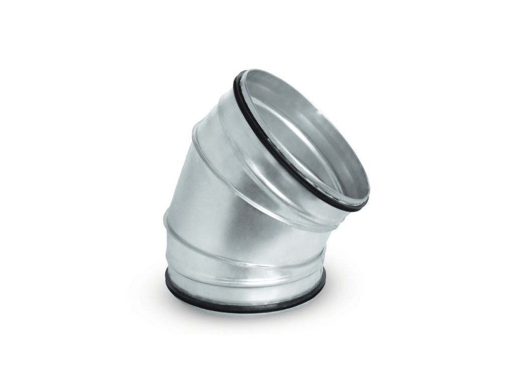 Koleno se ke spiro potrubí připojuje jednoduchým vsunutím. Pevného spojení s potrubím docílíme samořeznými šrouby nebo nýty a případně zaizolujeme hliníkovou lepící páskou.