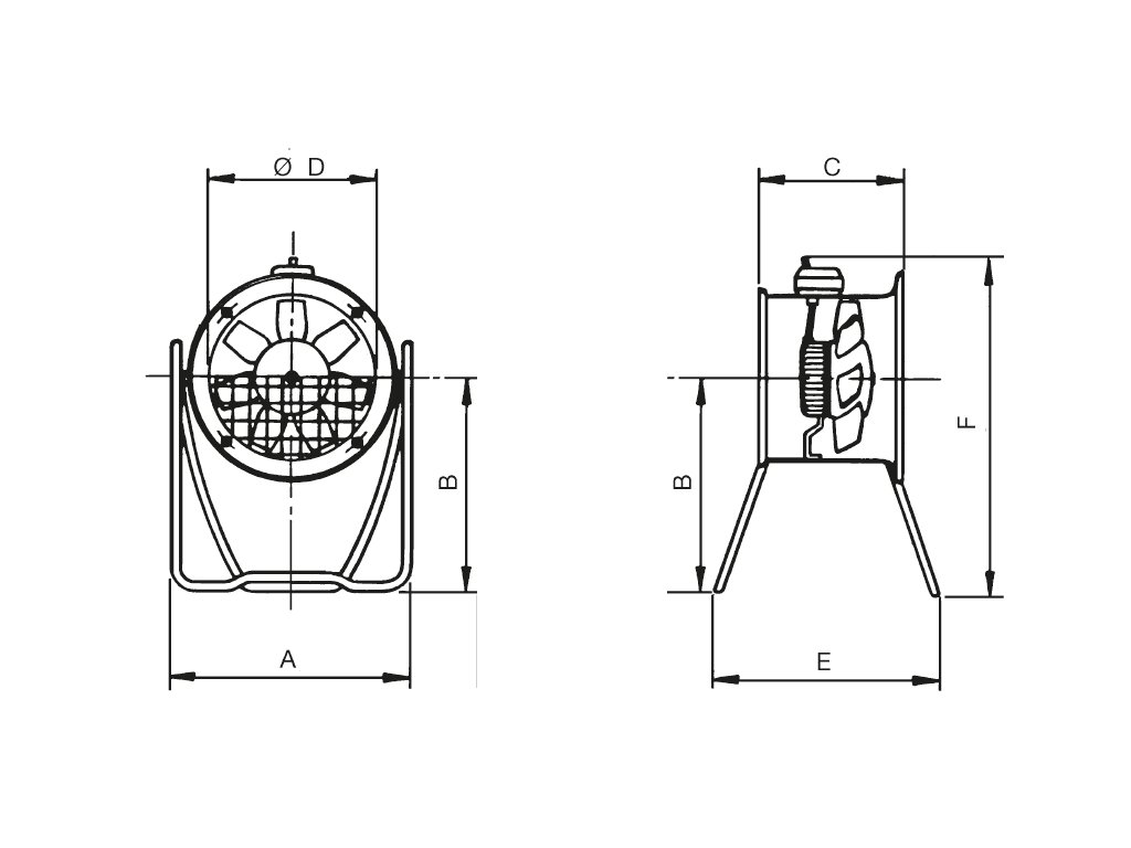 Ventilátory jsou vhodné pro větrání výrobních hal, sléváren, kováren, sušáren, strojoven, stavenišť, skleníků a chovných stanic.Skříň