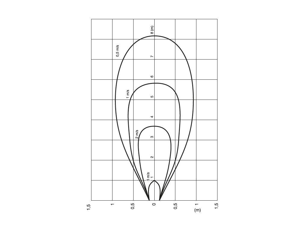 Hluk emitovaný ventilátorem je uveden v tabulkách, měření je prováděno ve vzdálenosti 1,5 m.