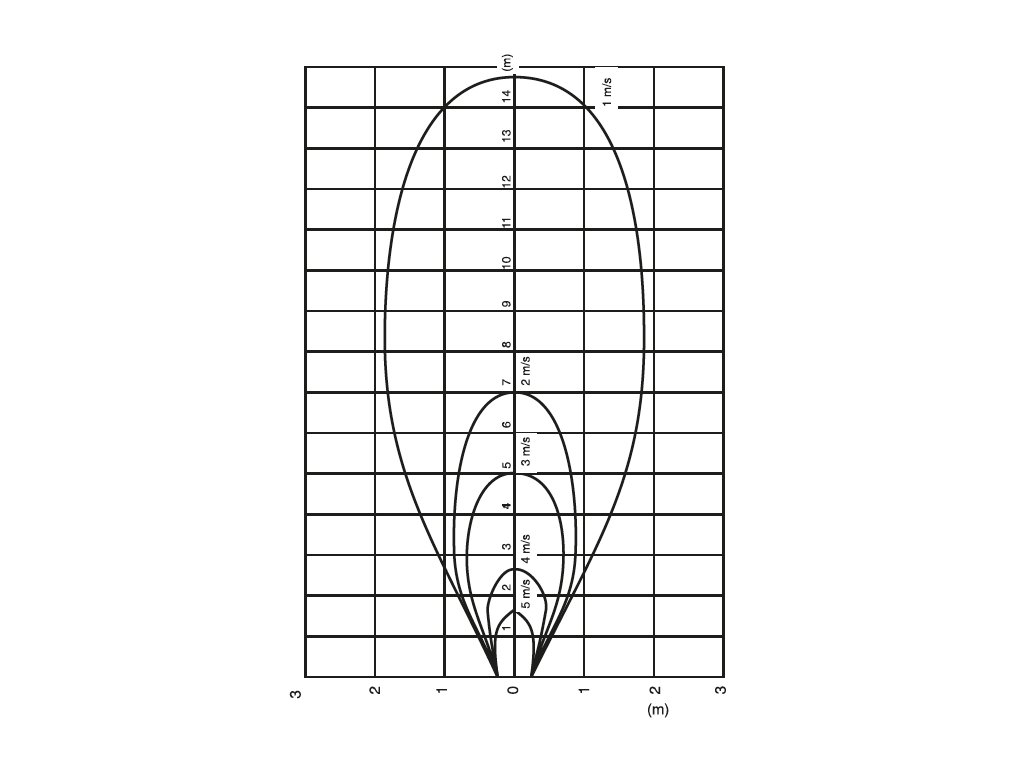 Hluk emitovaný ventilátorem je uveden v tabulkách, měření je prováděno ve vzdálenosti 1,5 m.