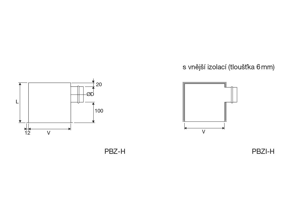 - PBZI-H - plenum box izolovaný s horizontálním připojením