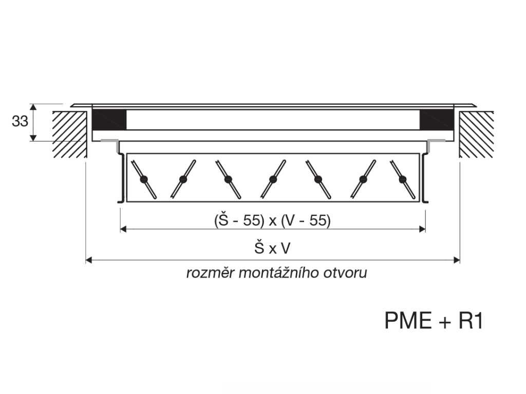 Podlahová ventilační mřížka PME obsahuje speciální profil pro připojení regulace R1, montáž je díky tomu rychlá a snadná.