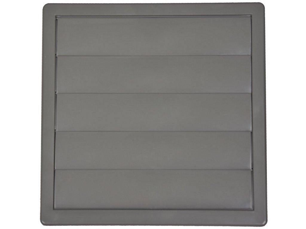 Plastová protidešťová žaluzie šedé barvy o výšce, šířce 170 mm, vhodná pro potrubí o průměru 125 mm. Díky systému, který po vypnutí ventilátoru efektivně brání vniknutí nečistot, hmyzu a vody, jsou tyto žaluzie vhodné pro širokou škálu využití.