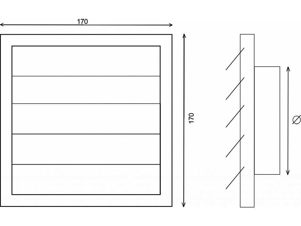 Plastová protidešťová žaluzie černé barvy o výšce, šířce 170 mm, vhodná pro potrubí o průměru v rozmezí 80-150 mm. Protidešťová žaluzie je navržena tak, aby se po vypnutí ventilátoru uzavřela, tím zabrání vniknutí nečistot, hmyzu nebo vody. Díky této funkcionalitě je vhodná pro širokou řadu využití v exteriéru.