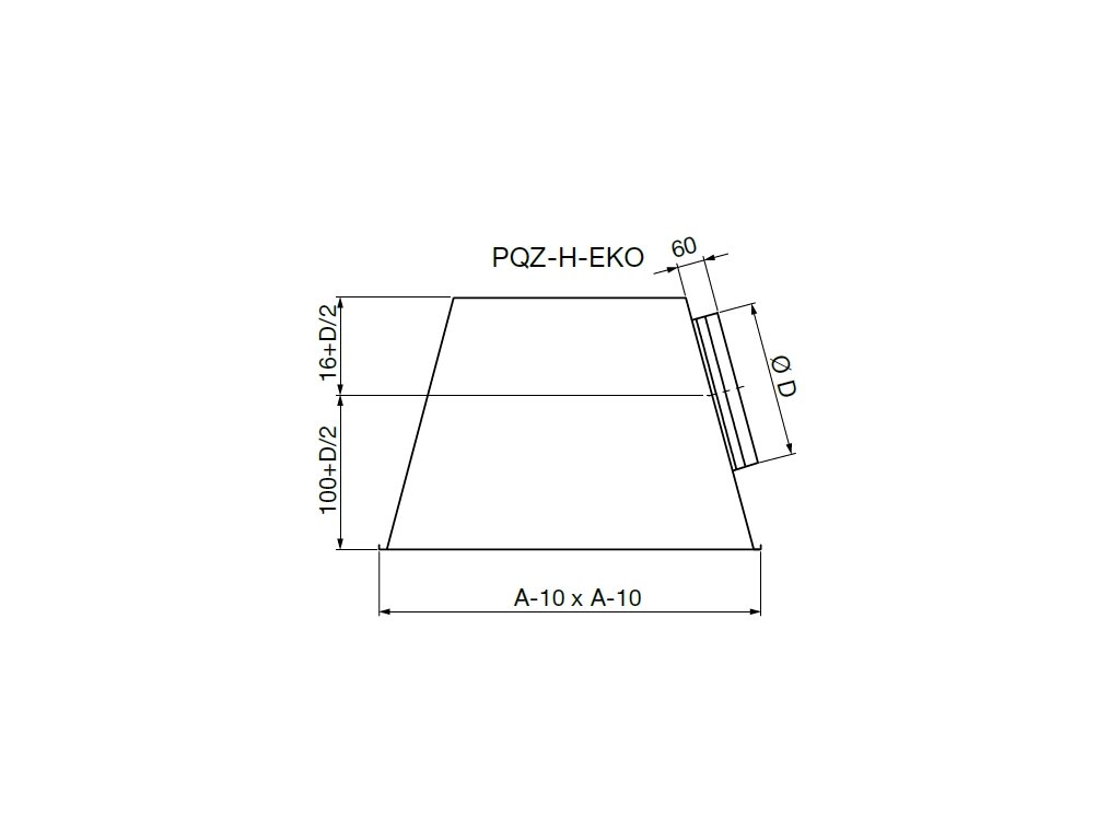 Plenum boxy pro vířivé anemostaty s připojením na čtvercovou čelní desku. Tvar komolého čtyřbokého jehlanu plenum boxů umožňuje stohování a tím lze uspořit místo při dopravě.