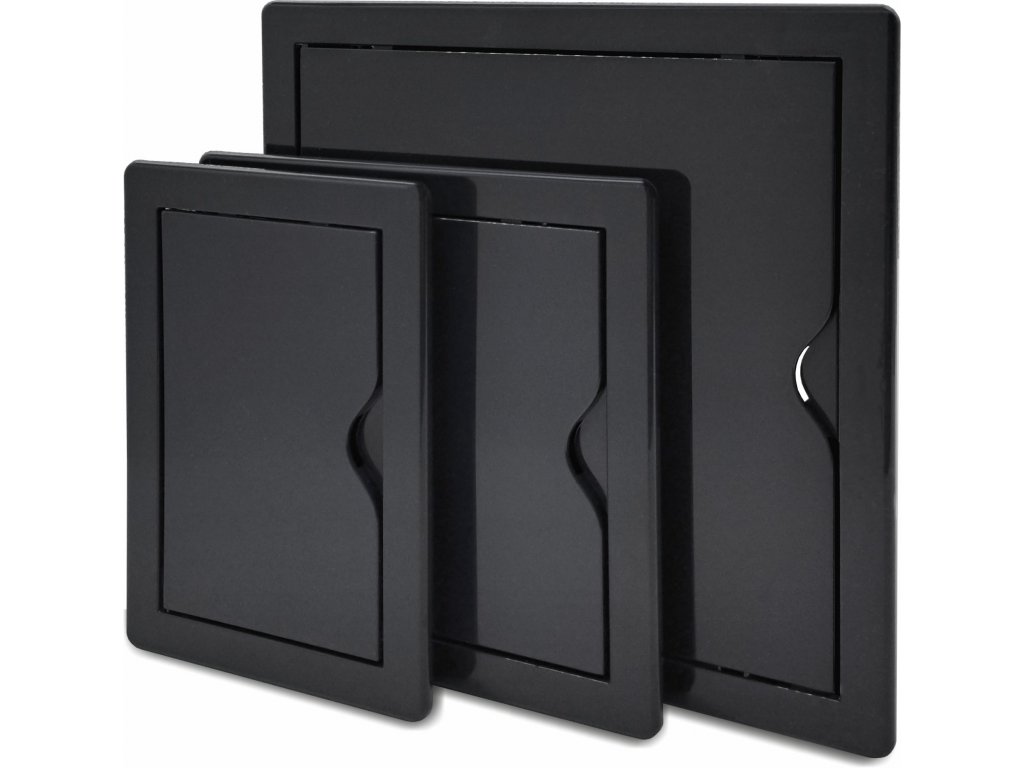 Revizní dvířka této série nabízí elegantní design v podobě grafitově černé a možnost změnit směr otevírání dveří, i když je rám již namontován ve zdi.