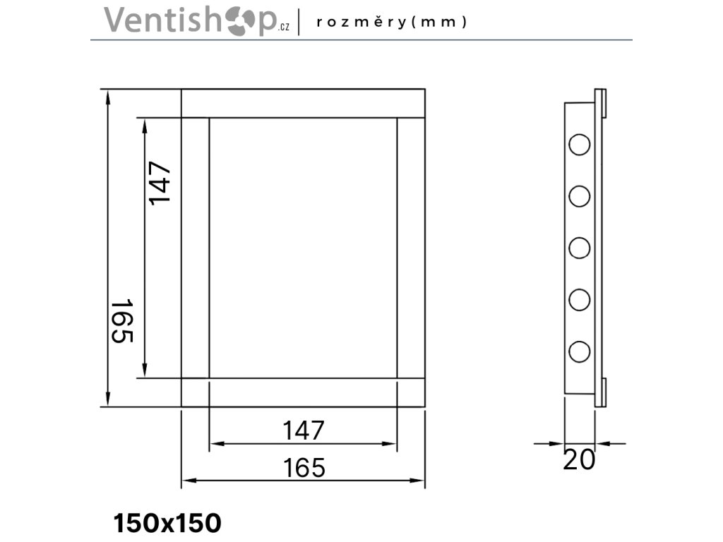 Plastová revizní dvířka - 147 × 147 mm (Š × V) (bez rámu), odolné proti vlhkosti, úhel otevření až 130 °, polymerový nátěr, barva bílá, vysoce kvalitní ABS plast, čtvercový tvar, předpokládané umístění (zdivo, fasáda, stěna, strop), upevnění lepidlem či šrouby, instalační otvory, rozměry (+ rám) 165 × 165 mm (Š × V), hmotnost 0,08 kg